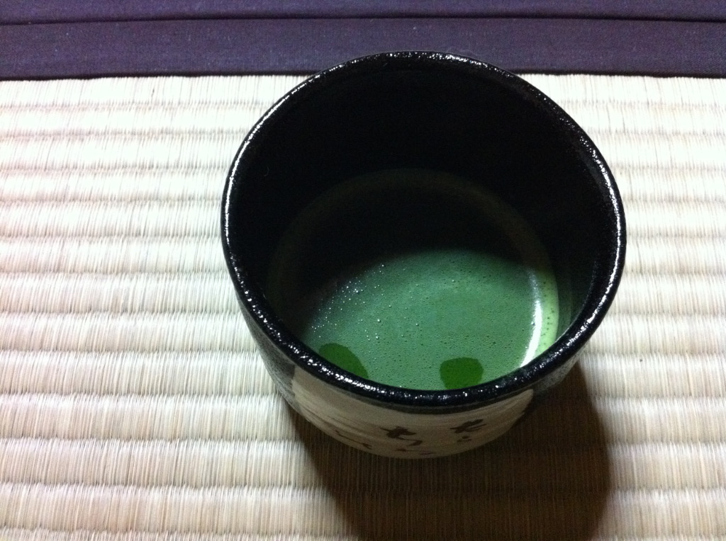 Hero seemed to have the difficulty moving the *teawhisk in tsutsujawan. (*teawishk: a special utensil made of bamboo used for preparing matcha) The tustsujawan that Hiro used had the smaller diameter and taller rims, which are restricting its whisking latitude, I think. Using tsutsujawan needs time to be practiced before getting used of it. I will use it on the next lesson and see how it goes (^_-)-☆
